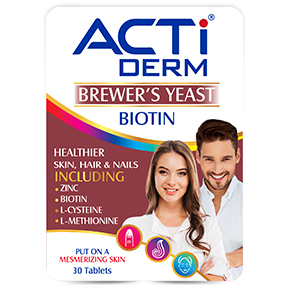 مکمل اکتی درم یک نمونه ی غنی از ۵/۰میلی گرم بیوتین بوده و موجب حفظ سلامت پوست، مو و ناخن می شود.